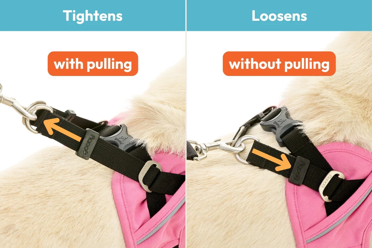 Gooby Pet의 EscapeFree는 반려동물이 쉽게 빠져나갈 수 없도록 하여, 주인이 안심하고 산책할 수 있도록 도와줍니다.